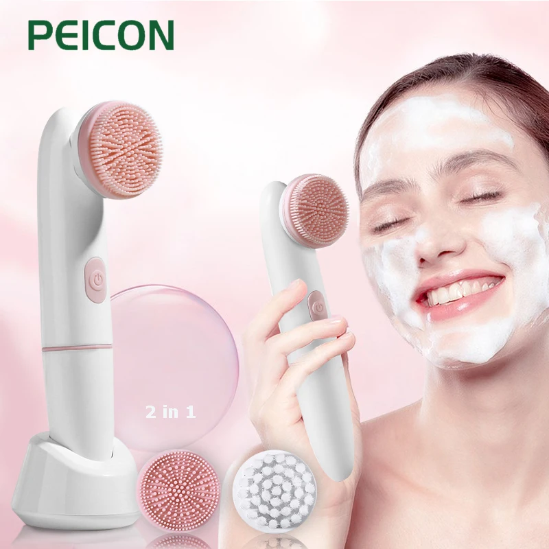 Mejor Herramientas de cuidado de la piel de Peicon Factory Store por Cepillo eléctrico de silicona 2 en 1 para limpieza Facial, masajeador con vibración, Zona T, limpieza de eliminación profunda, exfoliante, acné, herramientas de cuidado de la piel